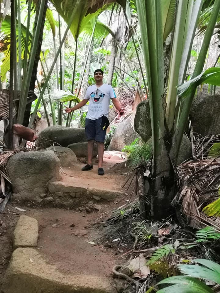 Day 3– We took a bus right outside our hotel to visit Vallee De Mai, which is a reserved forest and has numerous kinds of flora and fauna. Since we were short on time, we decided to roam around the place without a guide, only relying on the sign boards talking about the various kinds of lifeforms that we could potentially see there. After the tour, we were shown the Coco De Mer, which is the biggest nut in the world and weighs anywhere between 15 to 30 kgs! This fruit is considered auspicious by the locals and was served at major functions such as weddings in the past and is still also used for medicinal purposes. Apparently one Coco De Mer takes 6-10 years to mature and it is thus forbidden to pluck the fruit and it must be allowed to ripen and fall on its own. There was also a funny side to all these amazing facts, the uncanny resemblance the shape of the seed has to the female buttocks.